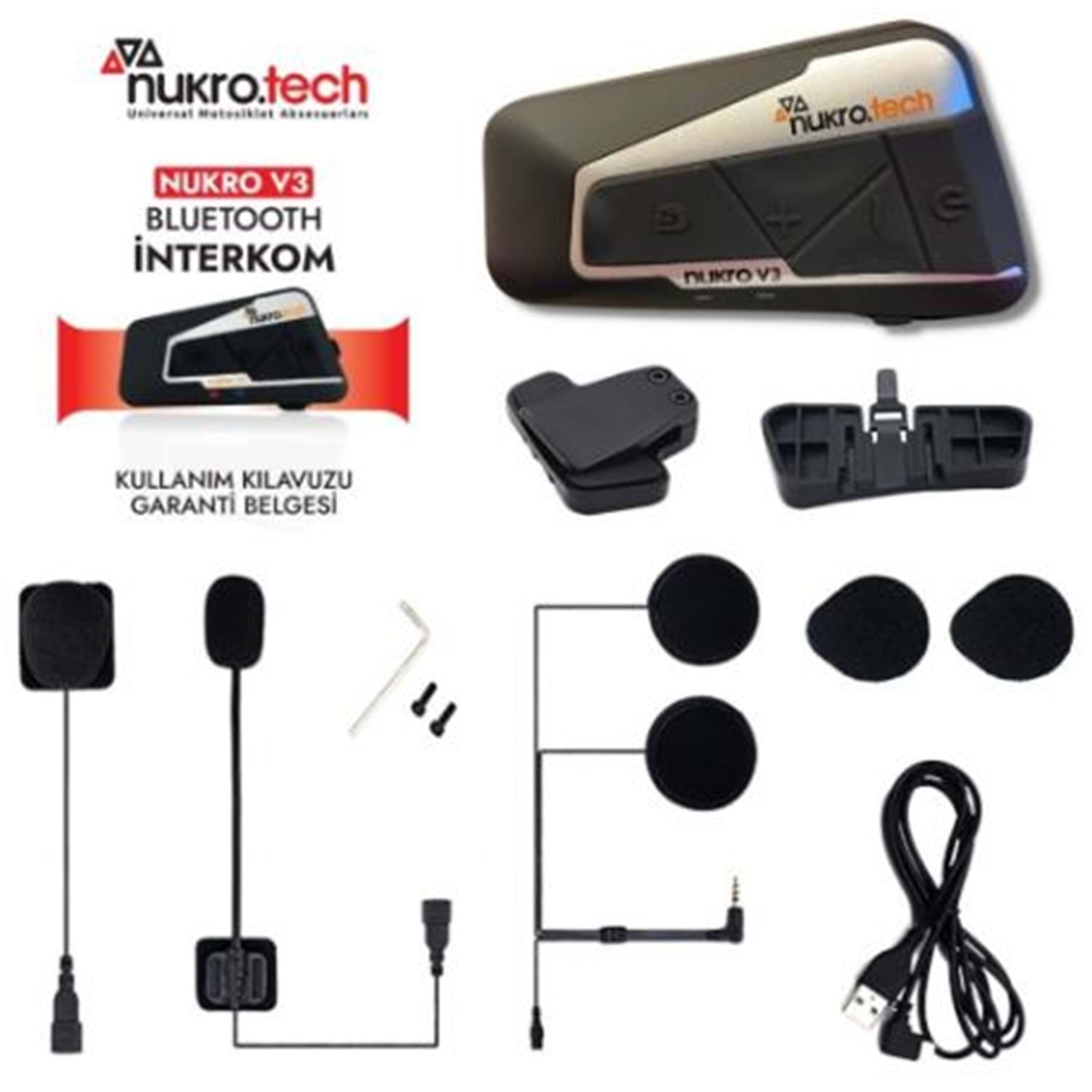 Nukro V3 Bluetooth İnterkom ile 2 kişi çift yönlü interkom özelliği sayesinde takım arkadaşlarınızla engelsiz iletişim kurmanızı sağlar. DSP gürültü azaltma fonksiyonu daha kaliteli konuşabilmeniz için gürültüyü etkili bir şekilde azaltır. Stereo kulaklık, yüksek hızlı sürüşlerde bile net ve yüksek ses sağlar. Şık Tasarımı ve büyük tuş takımı kolay kullanım imkanı sağlar. Evrensel İnterkom Protokülü sayesinde diğer İnterkomlarla 1200 --1600 Metre içinde bağlantı sağlayabilirsiniz.
