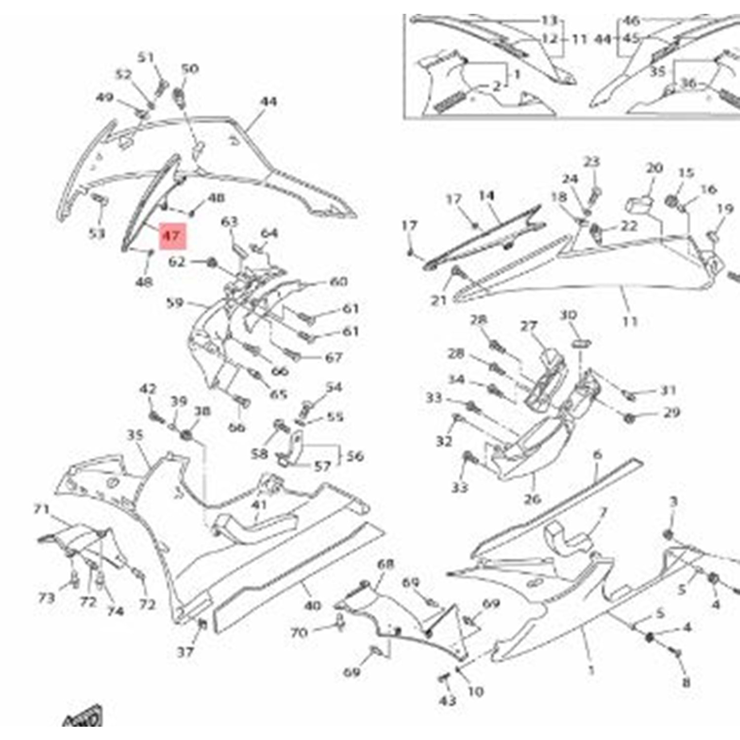 YAMAHA YZF R6 08-16 SAĞ PANZOLOT İÇİ PLASTİK 13S-28229-00